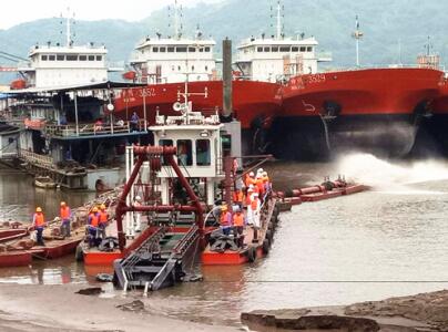 由公司控股子公司東港船舶建造的援烏茲別克斯坦挖泥船與配套用船項目首批兩條挖泥船分別于4月10日和14日下水。日前,經過東港船舶公司項目部近一個月的緊張調試和報檢,在得到監理單位和船檢的一致認可后,于5月20日開始了該批船的中期驗收。